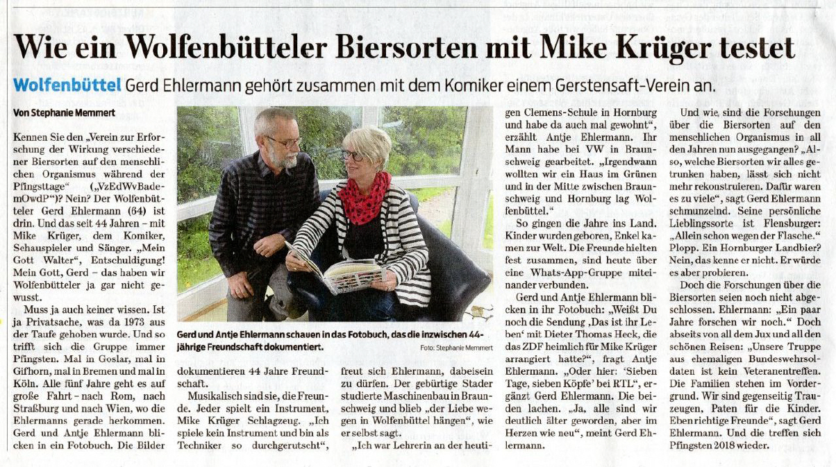 Am 3. August 2018 erschien in der Braunschweiger Zeitung ein Artikel, der sich unserem Verein widmete. Wir können also mit Fug und Recht behaupten: "Bekannt aus Presse, Funk und Fernsehen".