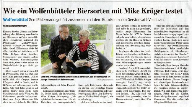 Am 3. August 2018 erschien in der Braunschweiger Zeitung ein Artikel, der sich unserem Verein widmete. Wir können also mit Fug und Recht behaupten: "Bekannt aus Presse, Funk und Fernsehen". |