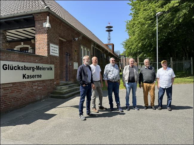 Wir wollen wieder einberufen werden!“ Mike Krüger, inzwischen 71 Jahre alt, steht lässig in Jeans und Sneakers mit fünf ehemaligen Kameraden vor dem Kasernentor in Glücksburg-Meierwik. An dem Ort, an dem alles begann: 15 Monate Wehrpflicht. Und man sieht: Der Kabarettist und Schauspieler hat seinen Humor nicht verloren. Mit der erneuten Einberufung wurde es nichts. Stattdessen hatten die ehemaligen Funker aber jede Menge Spaß und tauschten Erinnerungen aus – an die Zeit ihrer Grundausbildung in Meierwik, die Lehrgänge an der Marineschule Mürwik und schließlich („Da wollte sonst ja keiner hin“) beim Marinefliegergeschwader in Jagel. Mit acht Funkern war man dort ein wenig überbesetzt, „aber es gab ja auch andere Dinge, die man tun konnte“. Sie nannten und nennen sich „Admiralfunker“. Wer mit der militärischen Terminologie auf Kriegsfuß steht, dem sei gesagt: Dieser Begriff ist rein fiktiv. „Nur Gefreite zu sein, reichte uns nicht“, erklärt Alfred Kröll, Admiralfunkerpräsident auf Lebenszeit. So hat man sich kurzerhand selbst befördert.