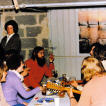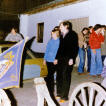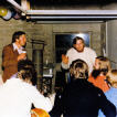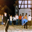 Günter und Andrea standen kurz vor der Hochzeit und so ist es auf dem Lande üblich, dass da noch ein richtiger Junggesellenabschied gefeiert wird. Der Junggesellenverein kam mit einem Holzwagen an, bei dem an den Eisenbeschlagenen Rädern die Sense geschliffen wurde. Wofür dieses Symbol wohl stand.