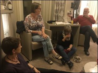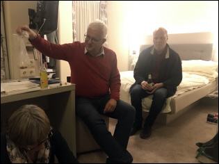 Eigentlich hätte man nach dem schönen Wochenende dann brav ins Bett gehen können, aber es gab noch ein paar Reste an Lakritze und Weingummi und Paranüssen, die vernichtet werden mussten. Da „unser“ Aufenthaltsraum in Hotel bereits durch eine andere Gruppe (vielleicht auch ehemalige Marine-Leute) besetzt war, trafen wir uns nochmals kuzerhand in unserem Zimmer. Es war wieder einmal ein wunderschönes Wochenende und es ist immer wieder schön, die Freundinnen und Freunde an Pfingsten zu treffen.