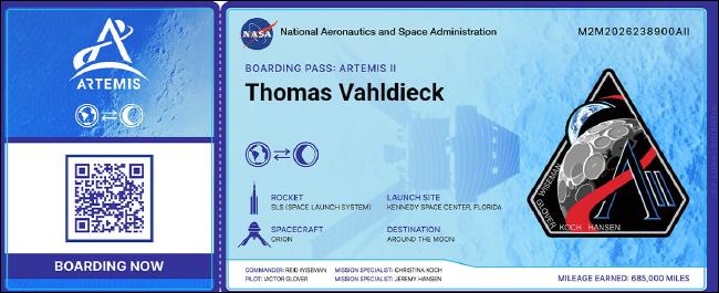 Beim nächsten Flug der Artemis II wird der Name unseres Freundes mit an Bord sein und zunächst die Erde umkreisen, bevor sich das Raumschiff auf den Weg zu einigen Mondumrundungen macht. |