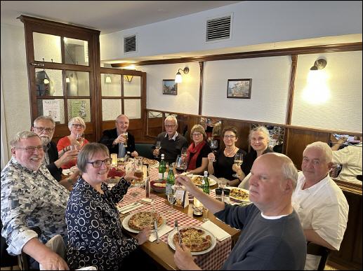 Und am Abend kam das, was seit vielen Jahren fester Bestandteil unserer Treffen ist, ein Abendessen in einem italienischen Restaurant. In Flensburg haben wir schon vor 50 Jahren im "San Marco" gesessen und die ein oder andere Pizza verspeist. Und als wir zum dreißigjährigen Jubiläum in Flensburg trafen, da waren wir Abends genau in dem gleichen Lokal. Das schöne ist, dass der Chef von vor 50 Jahren immer noch der gleiche Chef ist. Schade, dass er an dem Abend nicht im Hause war.