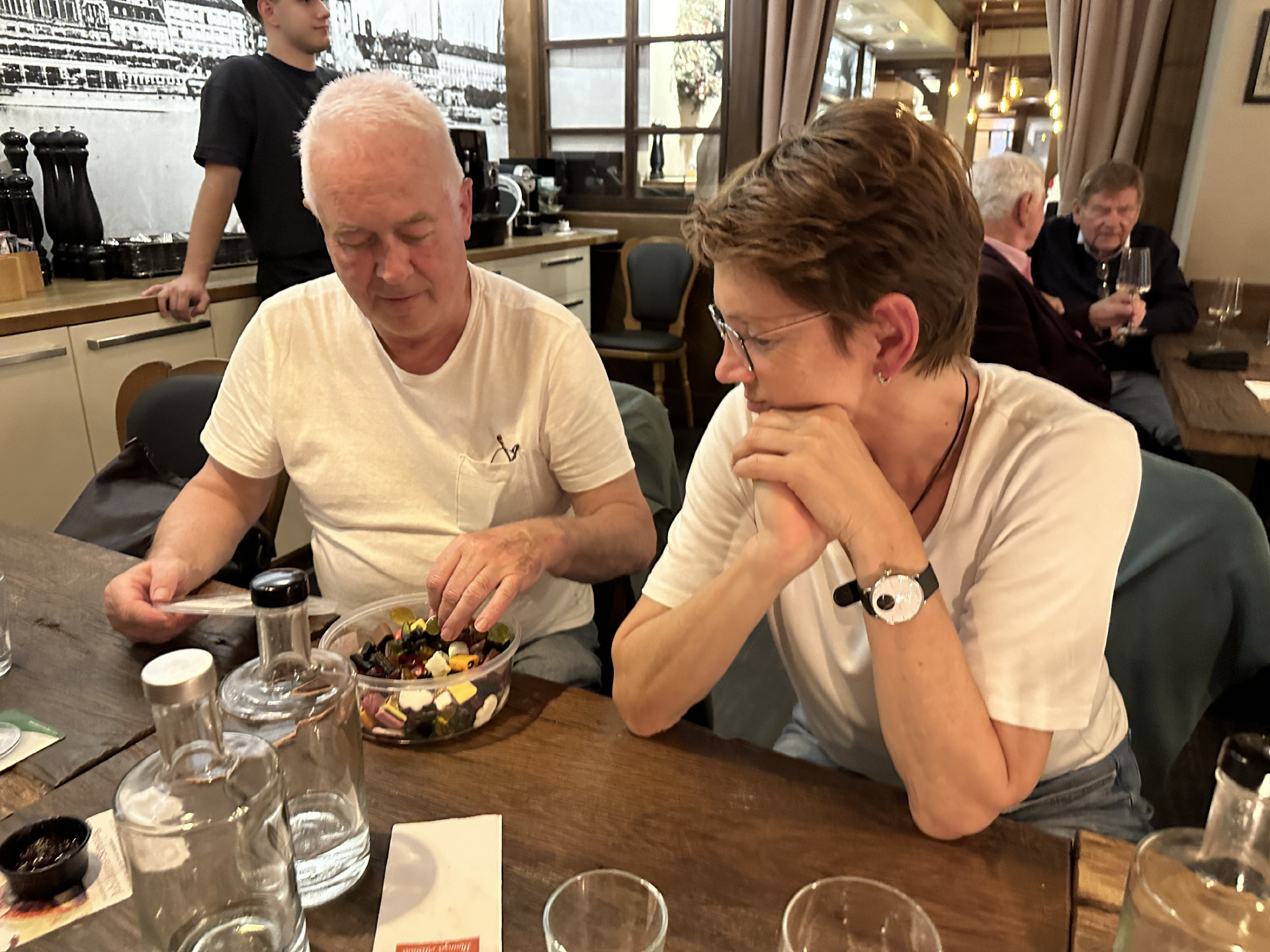 Zur kleinen Stärkung am Mittag im Weinhause "Zum Spiegel" stießen dann auch Gerd und Antje aus Wolfenbüttel dazu.Natürlich wurden erst einmal alle Neuigkeiten ausgetauscht und alle freuten sich, dass wir wieder einmal komplett waren.