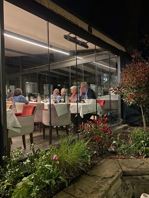 In diesem Jahr gab es schon vor Pfingsten einen schönen Anlass uns zu treffen. Renate hatte uns zu ihrem 70. Geburtstag am 11. April eingeladen. Leider konnten wir nicht alle kommen, aber es gab immerhin eine starke Abordnung unserer Freundesgruppe. Die Feier fand im Cafe & Restaurant im Eickeler Park statt, wunderbar gelegen in einem Park. Dieser bot genügend Platz für alle und die Kulisse für eine Drohnenaufnahme der großen Gesellschaft.